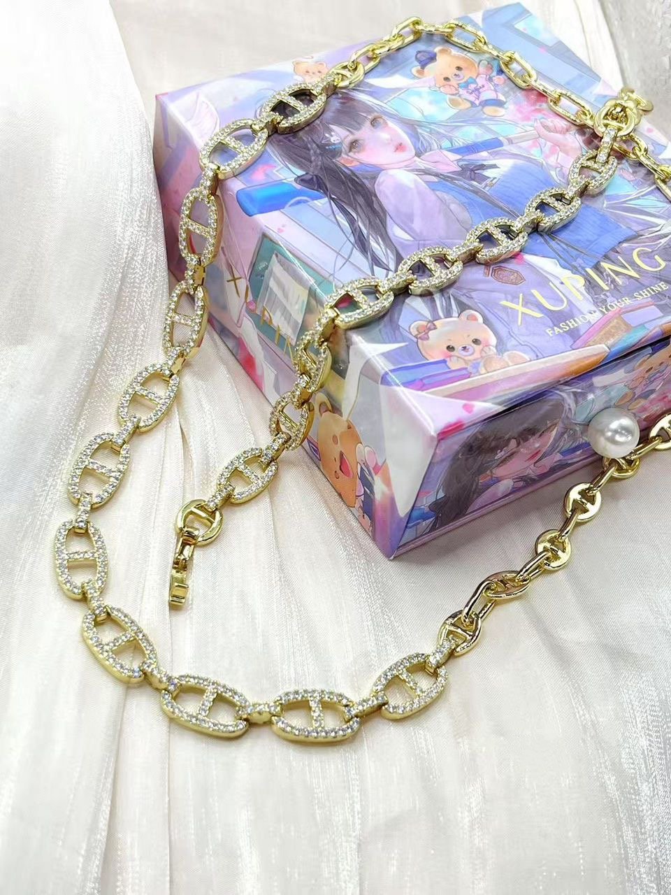 Set GG oro laminado size 45 cm (18″) cadena, bracelet 17 cm (6 1/2″) con extencion by Xuping
